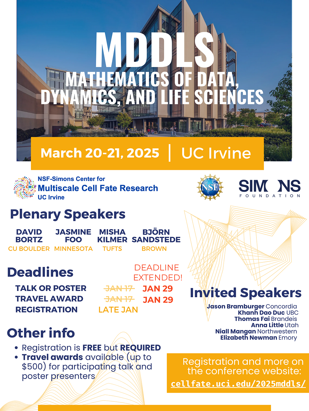 Applied and Computational MathematicsSpeaker Link: https://cellfate.uci.edu/2025mddls/Institution: UCI Time: Thursday, March 20, 2025 - 8:00am to Friday, March 21, 2025 - 5:00pmLocation: ISEB
