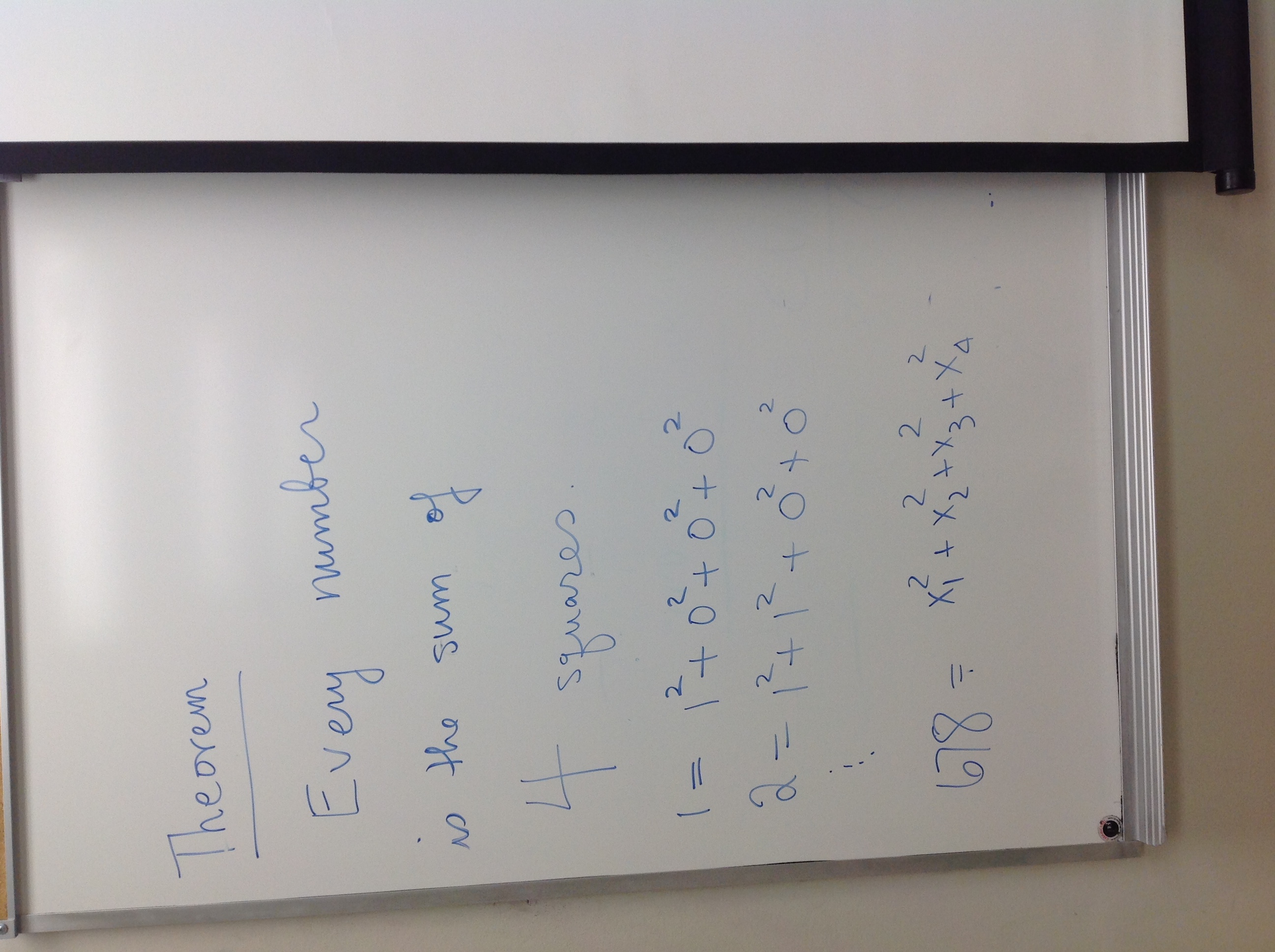 Application of FTA: the four square theorem; THE FOLLOWING TWO ITEMS WERE SCHEDULED BUT NOT INCLUDED BECAUSE OF THE TECHNICAL SNAFU:Zhang's work revisited;
