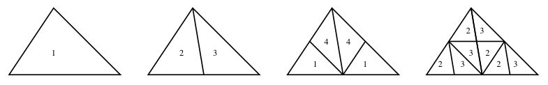The local numbering is shown in the following figure. We only need to bisect the triangle whose refinement edge is bisected. The local numbering is shown in the following figure. Note that we repeat the bisection only twice. No loop over all triangles. We also need to
