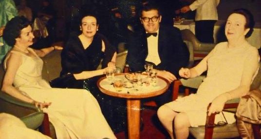Yet, what joy there was in Peggy's life, was in these astonishingly expensive cruises, most accompanying TC, which start in this chapter. Here with Ted, Judy and TC, she is lounging in what might be the USS Rotterdam, on which TC often traveled. This would have been after I was working at Allied Research Associatesin Boston with Ted, starting in June 1961, after leaving Michigan State. Those voyages continue for as long as she could get out of bed. With her agoraphobic fears, she would never have been "outside" without Gerry, as she is here, except on one of those cruises. Three of her children hardly saw her after 1960, except when she docked in Long Beach, until the last year of her life.