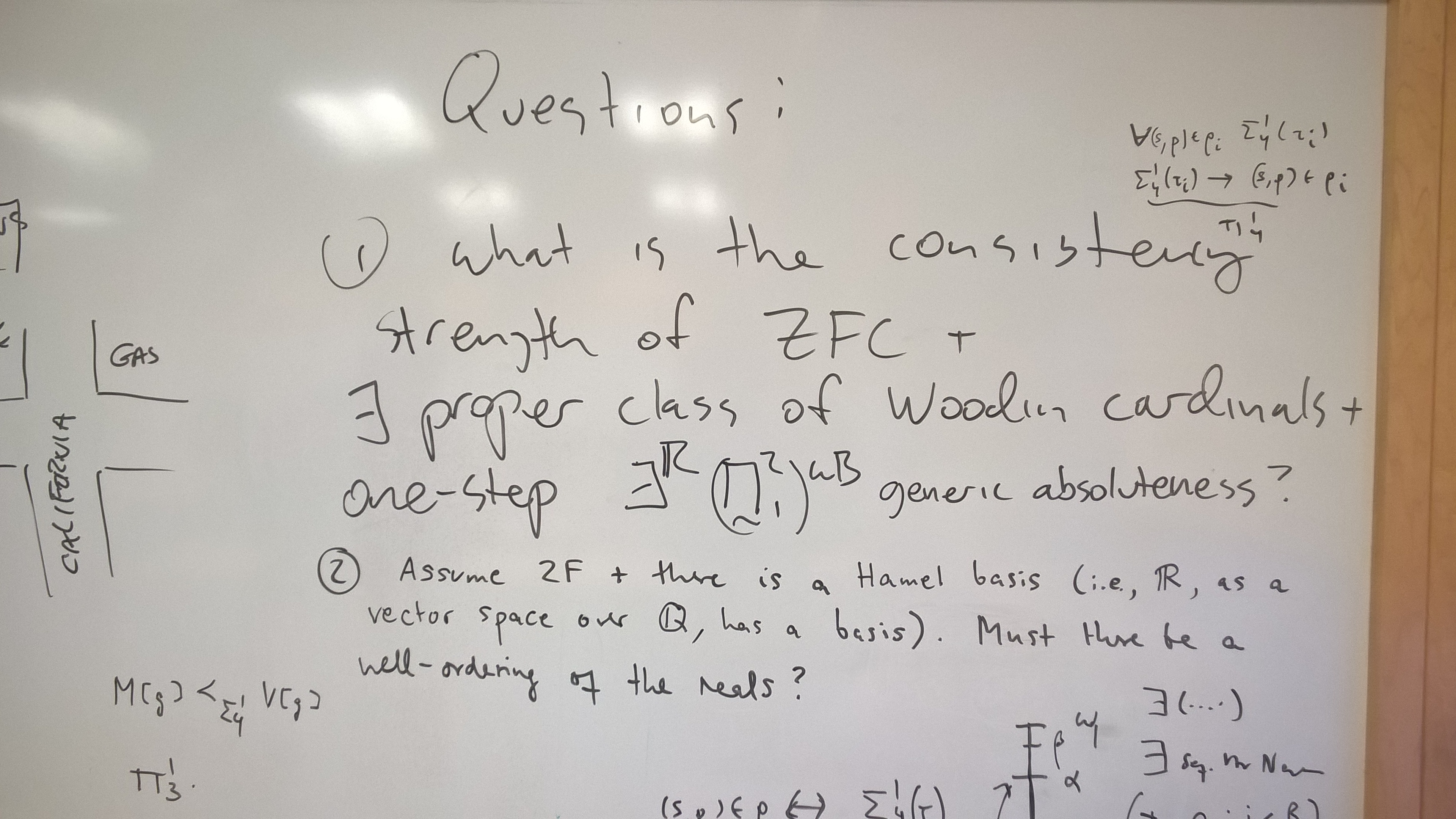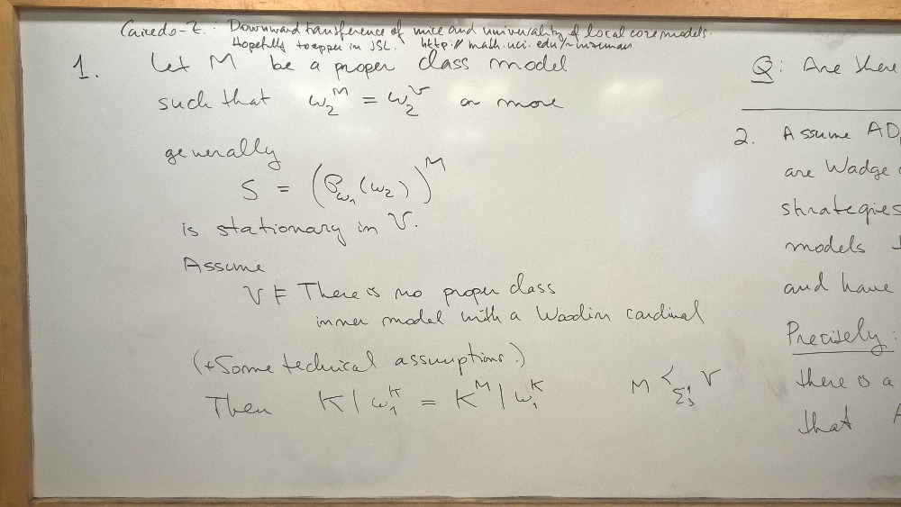 Abstract: We discuss some results and open questions about one-step and two-step generic absoluteness for the pointclass exists-reals (\Pi^2_1)^uB, assuming a proper class of Woodin cardinals. The determination of the consistency strength of two-step generic absoluteness for this pointclass is joint work with Grigor Sargsyan.
