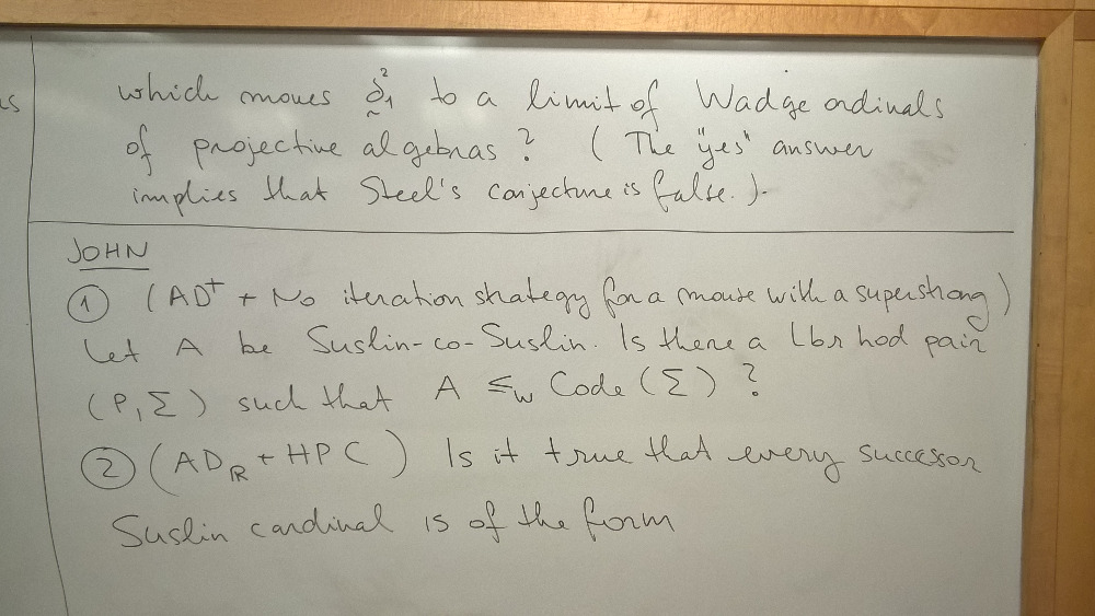 Steve Jackson: The spectrum of a pointclass and Steel's conjecture.